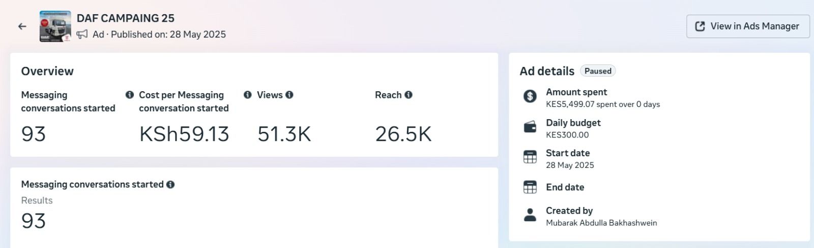 The objective for Abbas Trucks was to catalyze market demand for their DAF Truck inventory within the Kenyan region. By transitioning from general awareness to a data-driven conversion strategy, we successfully bridged the gap between digital visibility and tangible sales acquisition.