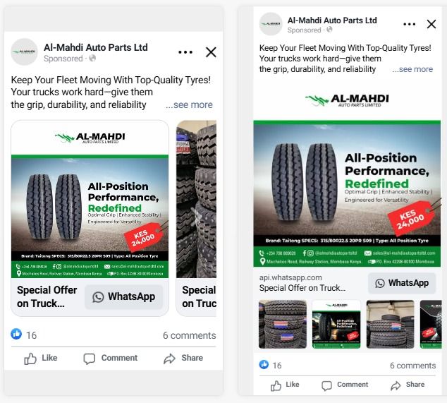 The objective for AL-Mahdi Auto Parts LTD was to strategically clear high-value inventory of Heavy Commercial Vehicle (HCV) tires. By analyzing market price points and focusing on the unique selling propositions (USPs) of the brand, we targeted specialized demographics to ensure rapid stock movement.